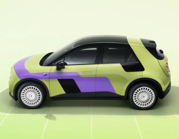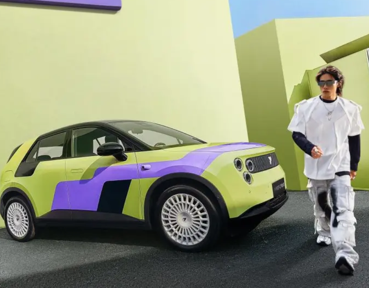 外观方面,新车的设计灵感源自y2k复古未来时尚美学,撞色车身是千禧年特有元素,绿色的基底代表蓬勃向上的生命力,霓虹紫拉花贯穿整个前机盖、延伸到车身两侧,车门处的胶片黑配色增添了浓重感。