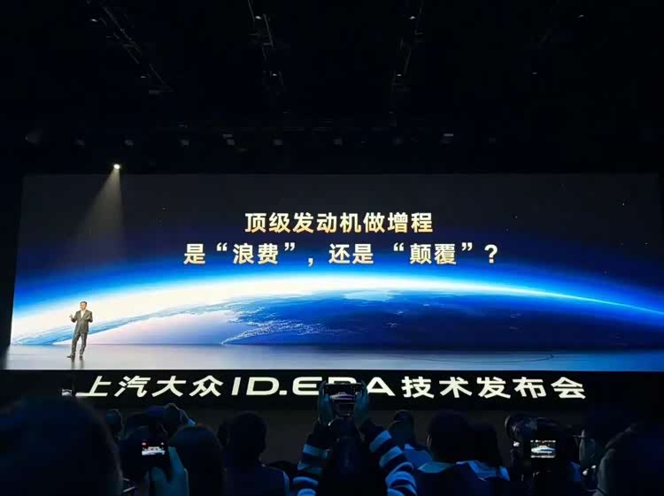 一辆深蓝色的ID. ERA 9X缓缓驶上舞台。台下没有欢呼,只有手机镜头密集的快门声,像一场无声的雨。