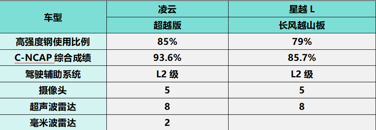 凌云超越版整车高强度钢使用比例达到了85%,凭借这份硬核的安全底色,此前,凌云超越版曾在C-NCAP碰撞测试中以93.6%的综合成绩获得五星安全评价,至今依然是同级别燃油SUV最好成绩保持者。星越L长风越山版整车高强度钢使用比例为79%,此前也曾在C-NCAP碰撞测试中以85.7%的综合成绩获得五星安全评价,但安全用料与碰撞测试成绩都与凌云超越版存在客观差距。