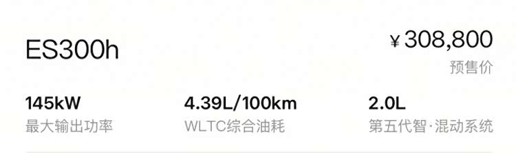 30.88万元起/2.0升油电混动,全新雷克萨斯ES300h开启预售