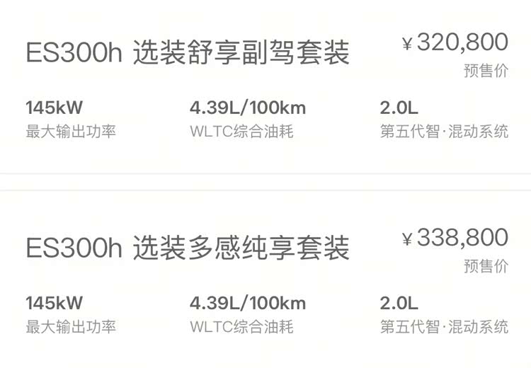 车家号·0浏览·2026-03-20 21:33 · 河南日前,我们从雷克萨斯官方获悉,全新 ES300(参数|询价)h开启预售,此次共推出3款车型,预售价区间30.88万-33.88万元。作为换代车型,新车基于全新优化的GA-K平台打造,动力部分搭载2.0升油电混动系统。