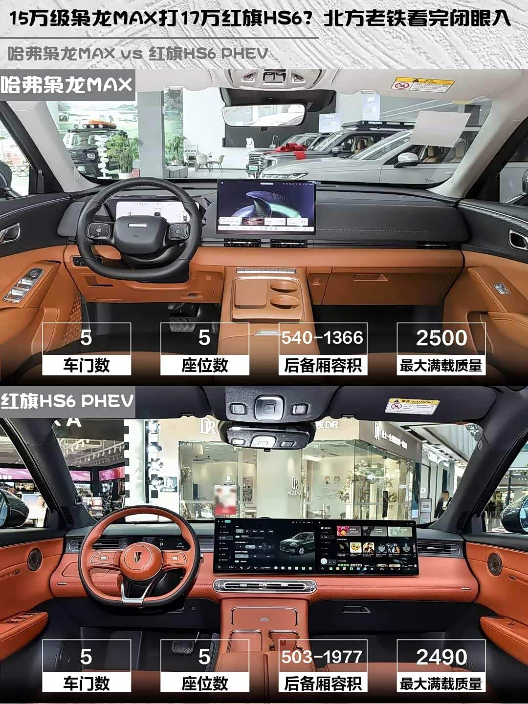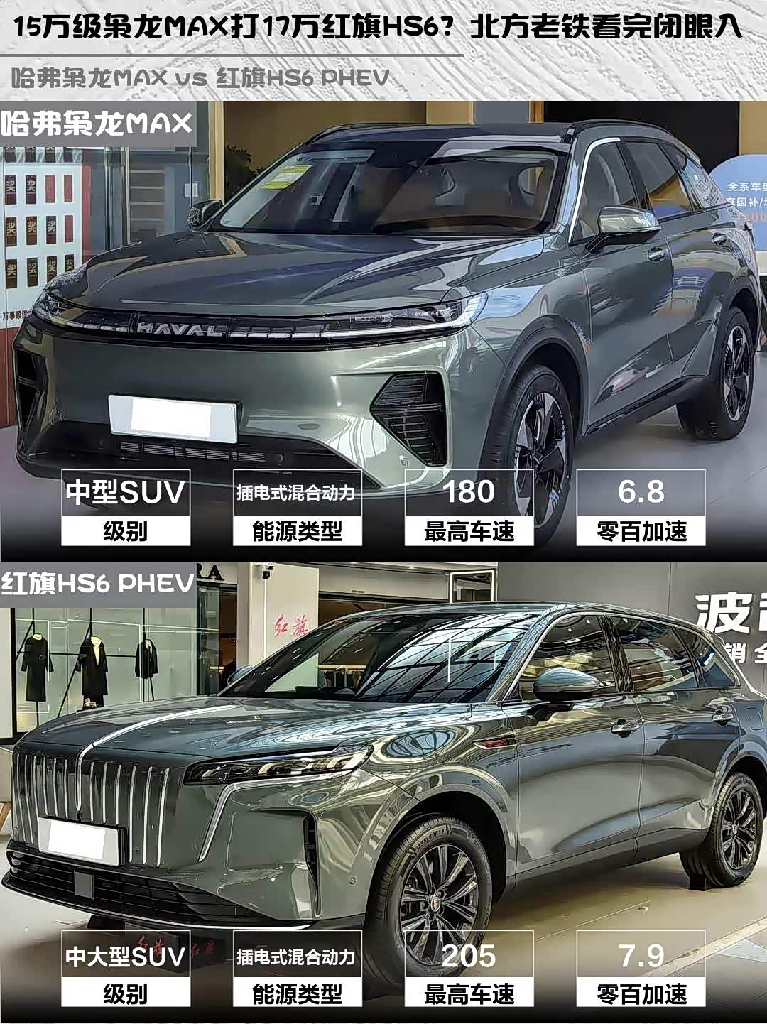 最近在纠结哈弗枭龙MAX和 红旗HS6 PHEV(参数|询价)这两款插混SUV的兄弟们看过来!作为深度体验过两台车的“老司机”,今天就从实际用车场景带你们盘一盘这两台国产狠货的区别👇
