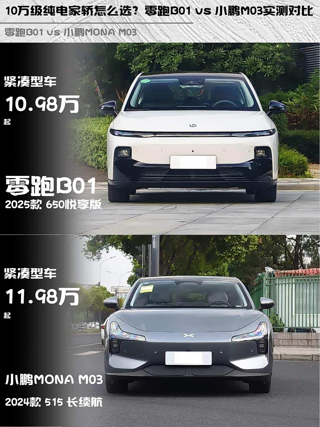 10万级纯电家轿怎么选?零跑B01 vs 小鹏M03实测对比