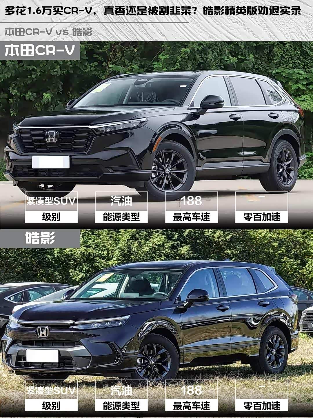 车家号·0浏览·2026-03-21 08:50 · 北京最近在纠结 本田CR-V(参数|询价) 2026款全球30年荣耀款和皓影2025款两驱精英版的朋友看过来!作为深度体验过两台车的车主,掏心窝子分享真实对比感受🔥
