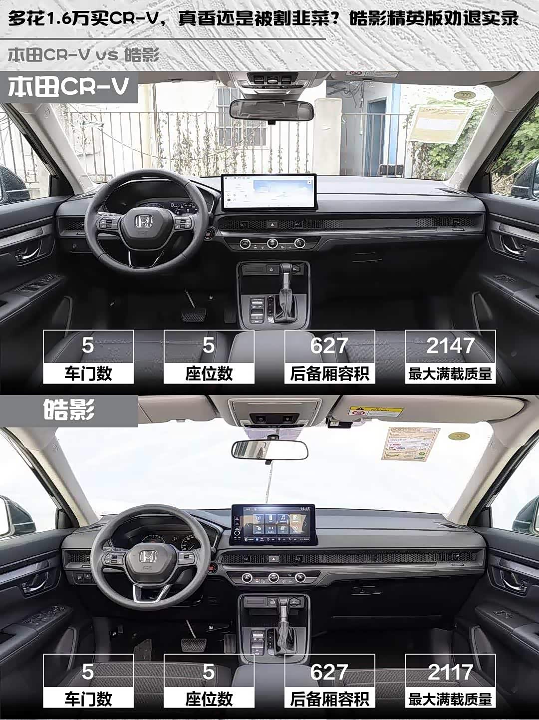💺 空间魔术师对决:两车后备箱都是627L,但CR-V后排地台更平整,实测坐三个成年人腿部空间多出2指。皓影座椅填充更软,长途舒适性小胜