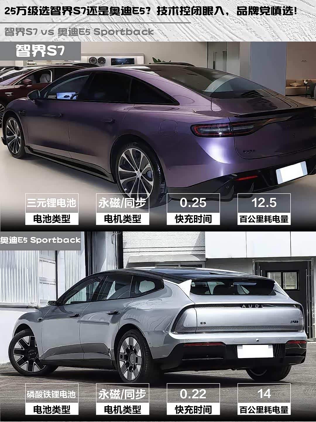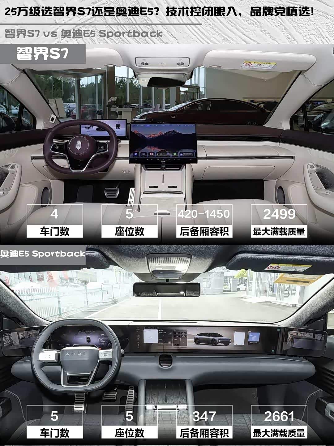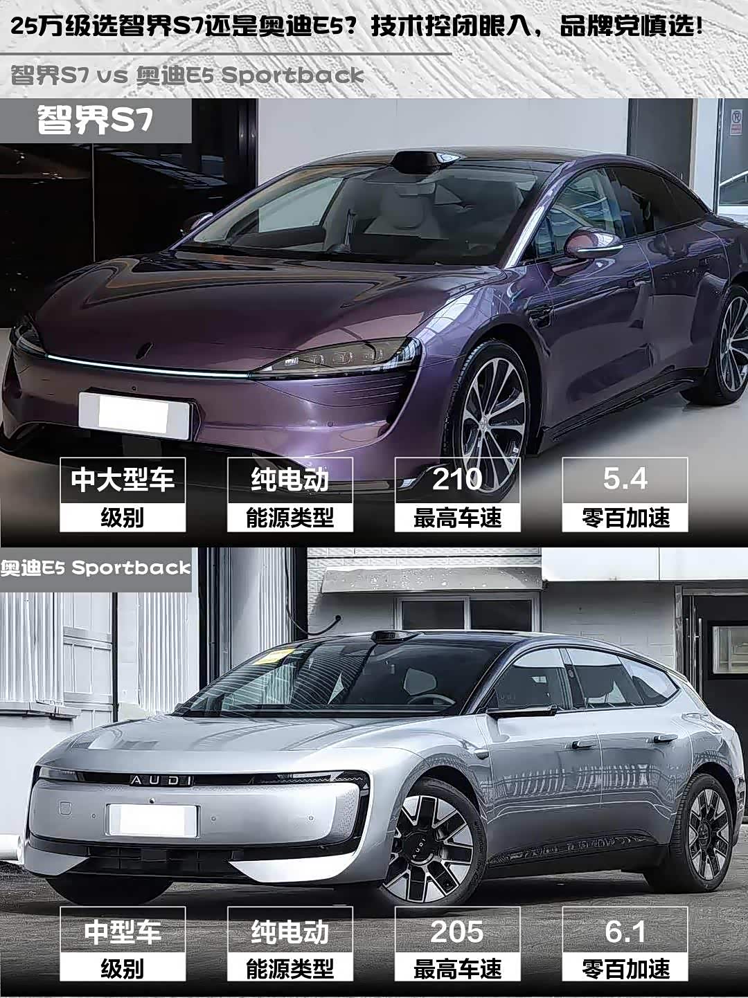 最近深度试驾了智界S7 2026款 Max+和 奥迪E5 Sportback(参数|询价) 2026款 先锋型,两款都是25万级纯电热门选手,但性格差异明显!作为技术控来聊聊真实体验👇
