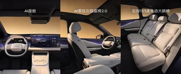 座椅是AI零压云毯座椅2.0,有53个传感器,能根据你身体压力自动调节支撑,前排是AI零重力座椅,后排能放到133度,还带电动调节、通风、加热和按摩,基本每个座位都能找到舒服的姿势。