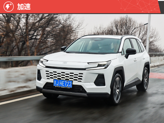 评测车搭载第五代智能电混双擎,2.0L自然吸气发动机最大功率112kW,最大扭矩188N·m,系统综合功率144kW,传动系统匹配E-CVT无级变速箱。实际驾驶过程中,车辆起步十分轻快,标准模式下动力输出平顺线性,切换至运动模式后,油门响应明显会变得更加积极。