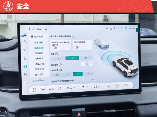 评测车搭载全新的TSS4.0 L2级辅助驾驶系统,支持车道居中保持、辅助变道等功能。使用时需要按下方向盘上的对应按键,开启后会有图标和文字进行提示。跟车距离支持4档调节,最近档位与前车间距较远,正常跟车状态下容易被其他社会车辆加塞。