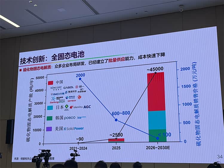 并且,硫化物电解质的成本已经从早期的每吨2000万元降低至100万元。但全固态电池是门槛很高的革命性技术,面临一系列科学技术难题,需要从关键材料、界面、电极、电芯等方面综合解决。
