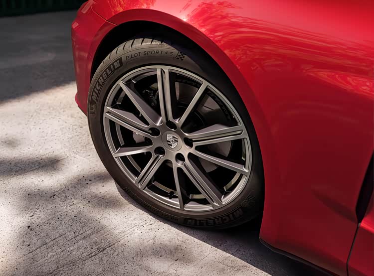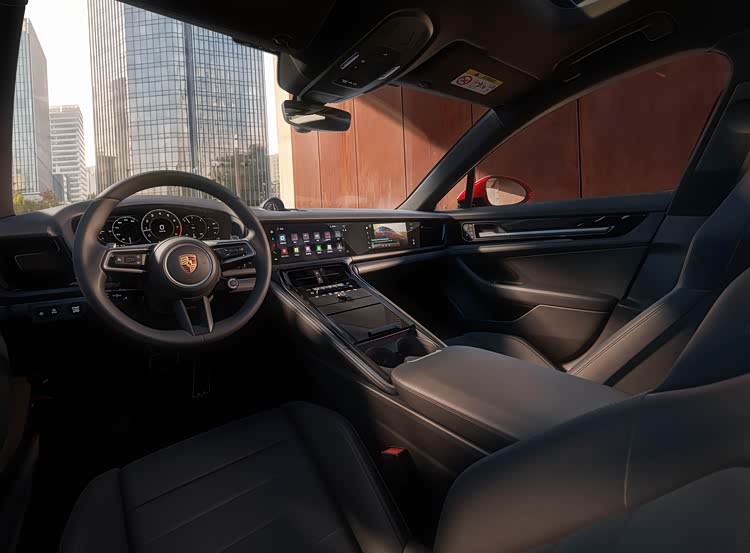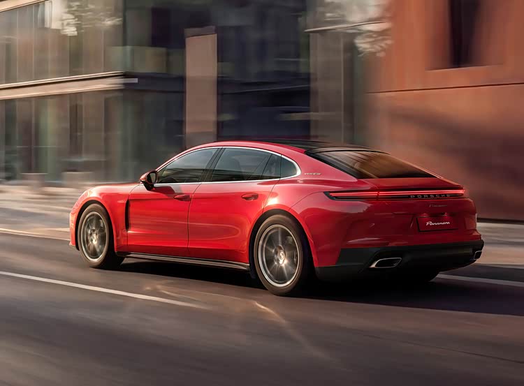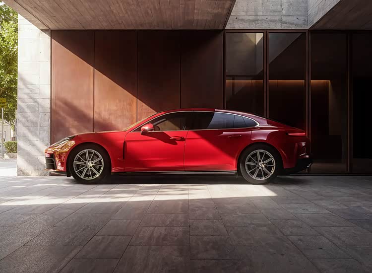 侧面造型方面,车顶采用了溜背式造型,线条感显得比较干练,有着浓浓的轿跑风格,腰线采用了贯穿式设计,点缀出了车身侧面的层次感;前翼子板位置设计有导流槽,能够提高空气动力学表现,轮眉和侧裙部分设计有隆起的筋线,有着一定的肌肉感,标配20英寸Panamera Turbo车轮,凸显了运动气息。