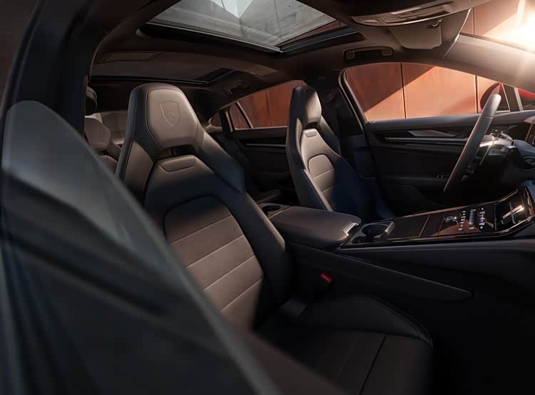 尾部造型方面,后备箱顶部设计有电动升降式扰流板,熏黑的尾灯组采用了贯穿式设计,有效拉伸了车尾横向视觉宽度,梯形牌照框区域则是内凹式设计,点缀出了车尾的层次感;下包围部分配备有扩散器,排气管采用了双边共两出布局,带来了比较强的运动属性。