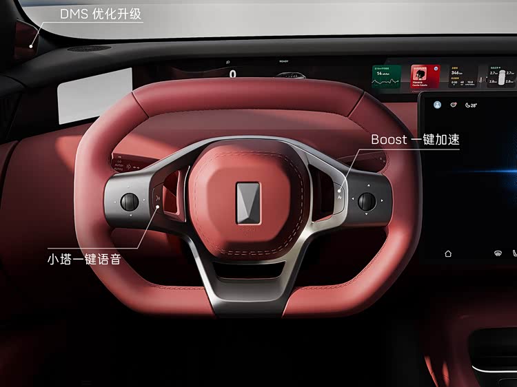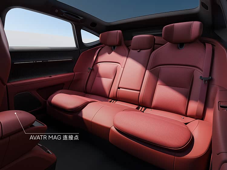 内饰方面,方向盘上增加了一键语音和Boost一键加速物理按键,门板扶手区域优化了应急拉手并新增车窗开关按键,下方新增开放式门板储物区,此外车型还采用了天鹅绒材质进行包裹,后排则增加AVATR MAG连接点。