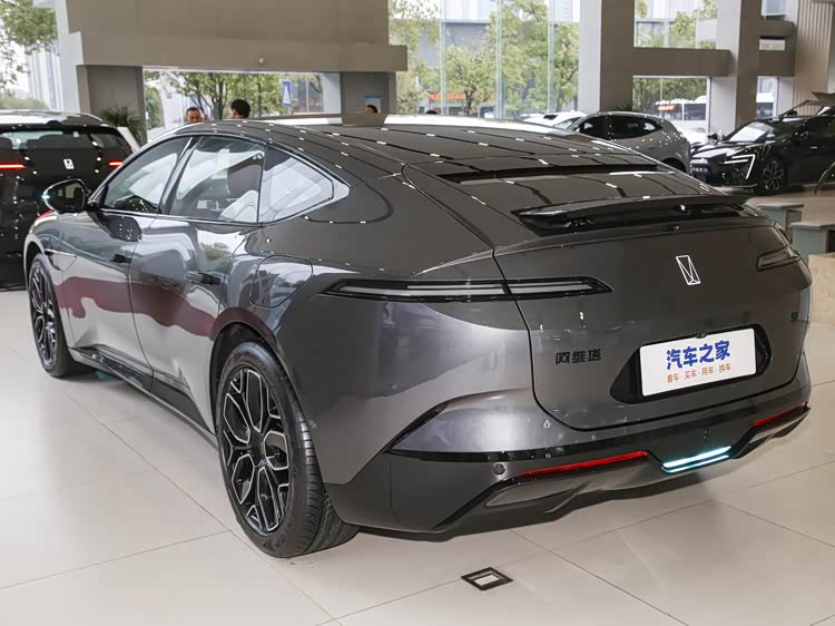 车尾依旧采用无后窗设计,这一结构在当前市场中属于较少见方案。尾部配备隐藏式电动扰流板,可根据车速自动调节开启角度,用于提升高速稳定性。一体式贯穿尾灯保持简洁造型,与后包围的立体结构形成对比。整体来看,尾部设计更多体现空气动力与结构差异,而非视觉复杂度的堆叠。