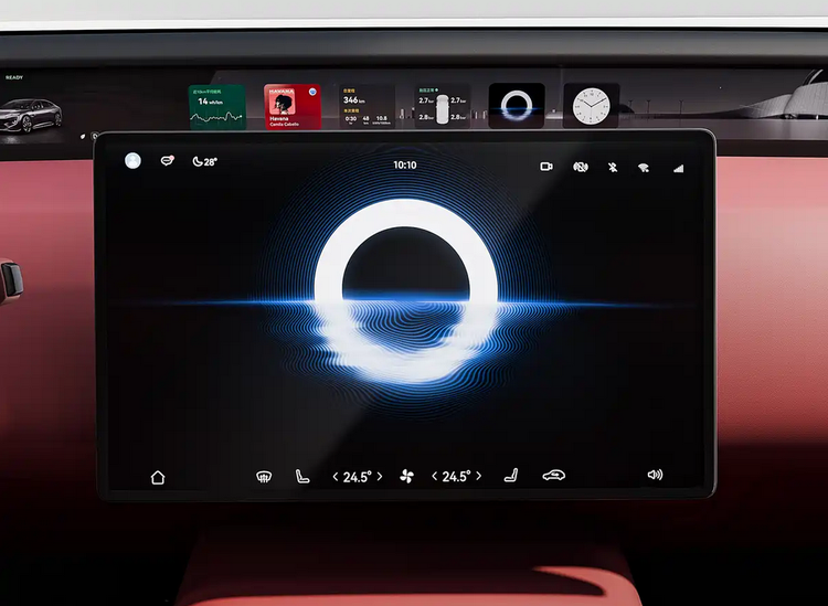 内饰部分延续分体式屏幕布局,包括远端贯穿屏与悬浮式仪表屏,同时两侧保留电子外后视镜显示屏。车机系统升级为鸿蒙座舱HarmonySpace 5,并引入MoLA大模型,用于提升语音识别与交互效率。系统支持多指令识别与导航模糊纠错,在实际使用中可减少重复指令输入。方向盘采用异形设计,此次新增一键语音与Boost加速按键,提升操作便捷性。车内材质以软包为主,车顶加入天鹅绒材质,进一步提升触感表现。