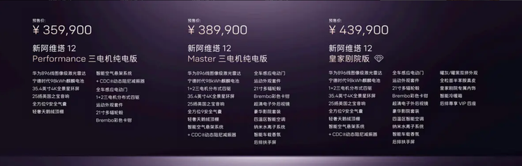 3月20日,新款 阿维塔12(参数|询价)开启预售,预售价格区间为29.99-43.99万元,共提供7款车型。从产品策略来看,此次改款并未对定位进行调整,依旧聚焦中大型轿车市场,但在配置层面与动力系统上进行了系统性优化。结合当前新能源中大型车的竞争环境,这一价格区间覆盖增程与纯电两种动力形式,进一步扩大用户选择范围,同时通过技术升级提升产品综合表现。