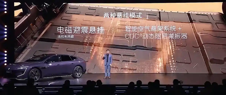 动力系统提供后驱与四驱多种方案。双电机后驱版本0-100km/h加速时间控制在5秒以内,三电机四驱版本加速时间低于3秒。从结构来看,四驱版本在前轴增加单电机,实现动力分配的进一步细化。在高车速工况下,系统支持在220km/h状态下爆胎稳定控制,这一功能依赖电驱与底盘系统协同工作,用于降低极端情况下的车辆失稳风险。