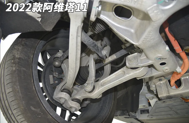 前副车架用料相当猛,全框式结构,铝合金材质,非常粗壮,“日”字形结构,比阿维塔11和12的“口”字形更结实。