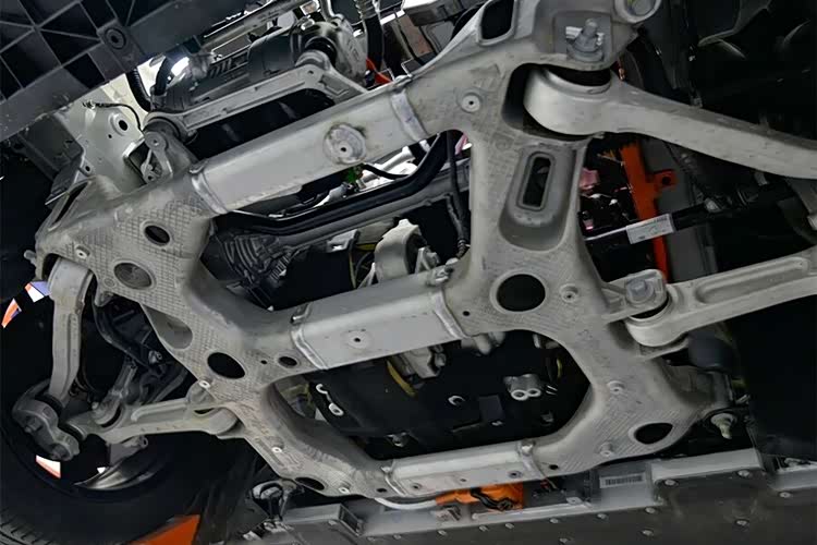 除了前车身是铝合金一体大压铸之外,这辆车的后车身也是铝合金一体压铸工艺。