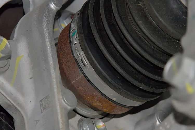 这辆阿维塔06驱动轴外球笼罩出现了生锈的现象。