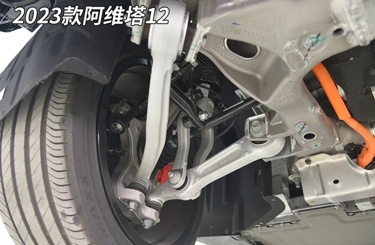 后悬主摆臂是一个粗壮的中空铝合金块,这种铝合金摆臂不仅重量轻,而且弹性模量大,会有更好的行驶质感。后悬延续了阿维塔12的设计,与阿维塔11的钢板五连杆后悬并不一样。
