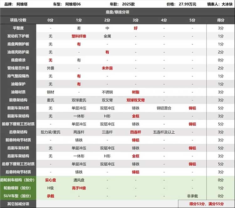 2025款阿维塔06底盘评分