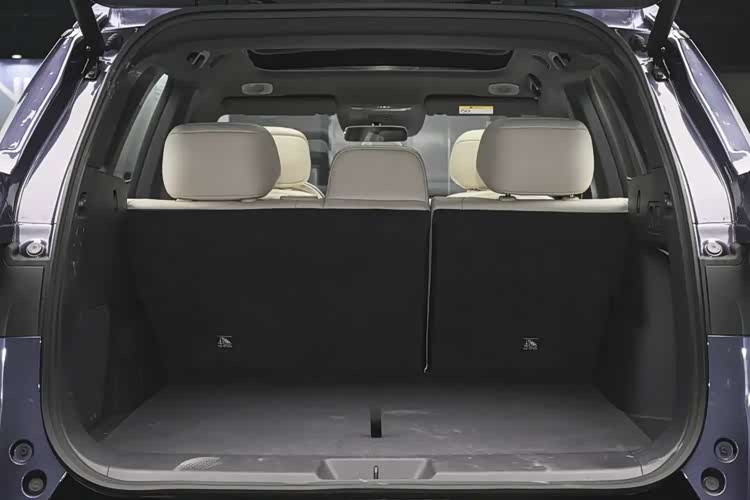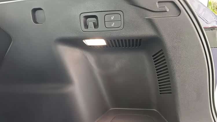后备箱里右侧有一个挂钩、一盏照明灯和两个电动座椅调节按钮,可以对后排座椅的靠背角度进行无极调节。但是左侧却空空如也,如果这里能再加一盏灯、放一个2000W外放电插座,或者是12V电源接口,就完美了,这算是个不小的遗憾。