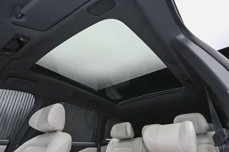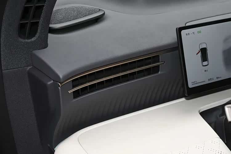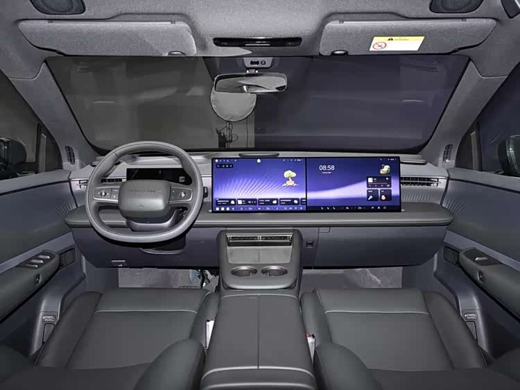 顶棚没上N7上那套短绒面料,而是用了织物面料,应该也是成本考虑,有点遗憾。不过这个织物面料在黑线里掺入了一定比例的白线,有种牛仔布的既视感,摸上去又是软的,不像启源A06那么硬邦邦的,质感不算掉价。不可开启的全景天幕面积挺大,带电动遮阳帘,唯一的遗憾是后排没有手动开关遮阳帘的按钮,需要呼叫语音助手,前排也得在大屏上才能控制遮阳帘。