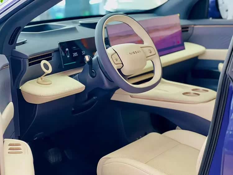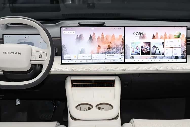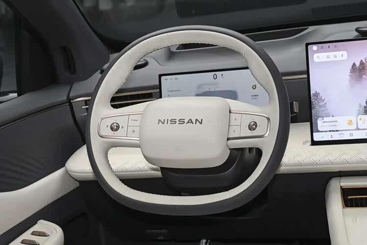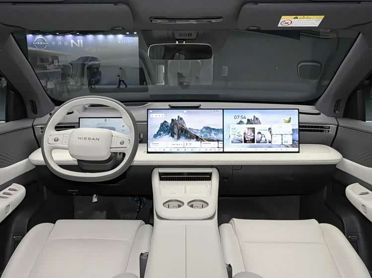到了这次日产NX8上,目前公开的只公布了两套内饰颜色,一套是展车上的黑白内饰,另一套是黑紫内饰。相比之下,我会更喜欢黑白内饰,毕竟家用车,以米白色为主色调的内饰更加温馨,而且顶棚这次全都用了黑色面料,不会显得整体过于煞白。日产NX8仪表台设计得有点意思,他不像理想、蔚来这些新势力走极致简约路线,直接把方向盘和中控屏往仪表台上一按,显得仪表台光秃秃的,而是在仪表台的前方增加了一个相对比较窄的台面,远远看去方向盘和中控双连屏更像是摆在上面,给人一种安心感。
