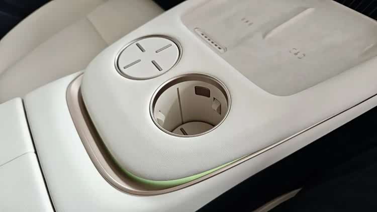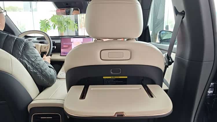 两个前排座椅后方都有拓展接口,可以接入平板等拓展物品。销售介绍说这次会新增一个颈椎加热理疗仪,不过我看预售发布会上没提,可能会在正式发布会上讲。副驾靠背上还有一个小桌板,凹槽被设计在了比较靠前的位置,我试了一下,横向放置手机还行,如果放平板就很容易倒下来。