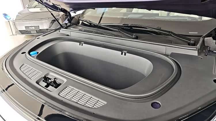 日产NX8的储物空间表现我觉得是有点超出我预期的。首先纯电车型有一个95L的前备箱,这是目前我见过的前备箱里最长的,进深也非常可观,不足就是有点窄。最大的问题在于没有启源A06那样方便的电动打开,也没有马自达EZ-60那种语音打开,要想打开他还是得在驾驶位下方拉动两次把手。销售说有可能可以通过手机APP远程开启,预售发布会上没提及,我猜可能性不大。