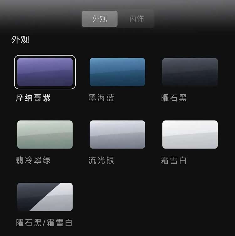 首先说颜色,销售说这个最出挑的摩纳哥紫是顶配专属。说实话我不太喜欢这个颜色,相比之下我更喜欢N7上那个比较低调的墨海蓝,好在这次NX8也有。还有一种也是N7上已有的叫流光银,这是一种偏暗一些的银色,光线照上去会有变化。打开东风日产APP,我们还能看到曜石黑、霜雪白和翡冷翠绿,还有一款黑白双拼色(我猜要额外花钱选装),但垂媒上还没有这些实车的照片,咱就不点评了。