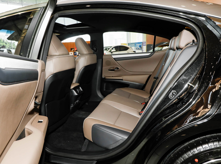 进入车内,全新雷克萨斯ES依然保留竹纹透光饰板展现东方豪华美学,车顶巨大的天窗,配合着四周宽大的侧窗,为车内提供了充裕的采光。环抱式的座舱采用了大面积黑灰色Alcantara面料、还加入了原木色的饰板、橙色真皮材质铺陈,并配备了橙色真皮沙发座椅,主驾驶席座椅记忆、前排座椅加热、通风、电动调节方向盘、方向盘加热、HUD抬头显示、后排遮阳帘、前排手机无线充电、马克莱文森音响、L2级驾驶辅助和小尺寸天窗。依然保留竹纹透光饰板展现东方豪华美学。中控台取消了大量的物理按键,取而代之的是触控按键,不仅外观更加简约,也更具科技感。配备了重新设计的三辐式方向盘,两侧还加入了触摸式感应按键,还配备了两个换挡拨杆和换挡拨片。操控岛取消了传统的换挡手柄,取而代之的是小尺寸推拉式换挡机构,让车内布局更加简约、也更加高级。科技感方面,该车配备了大尺寸全液晶仪表、14英寸中控屏,并可选装14英寸副驾屏,搭载了中国专属研发的LEXUS interface多媒体系统,支持 CarLife、CarPlay、车联网及5G网络。