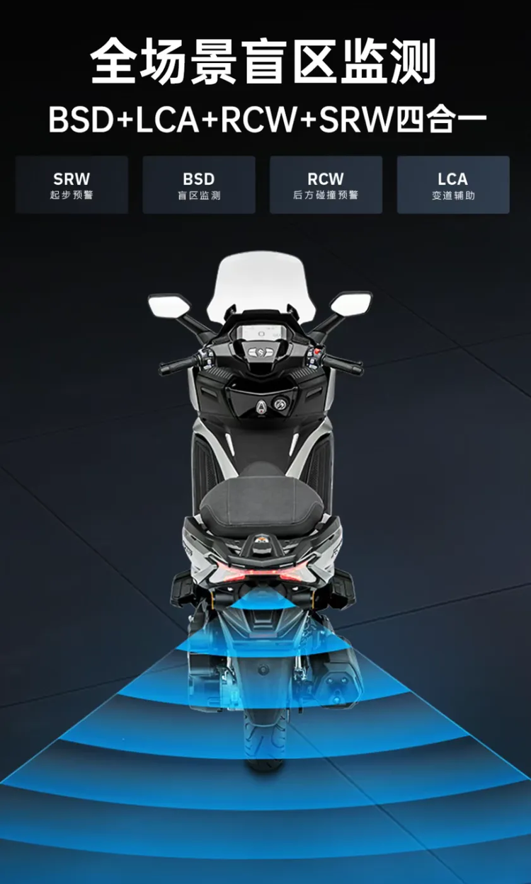 基础安全配置拉满:全系标配博世双通道 ABS+TCS 牵引力控制,搭配博世电喷系统,湿滑路面、紧急制动时车身稳定性大幅提升,新手也能轻松掌控。同时配备胎压监测、无钥匙启动,日常骑行无需反复掏钥匙,行车安全与便捷性同步升级。