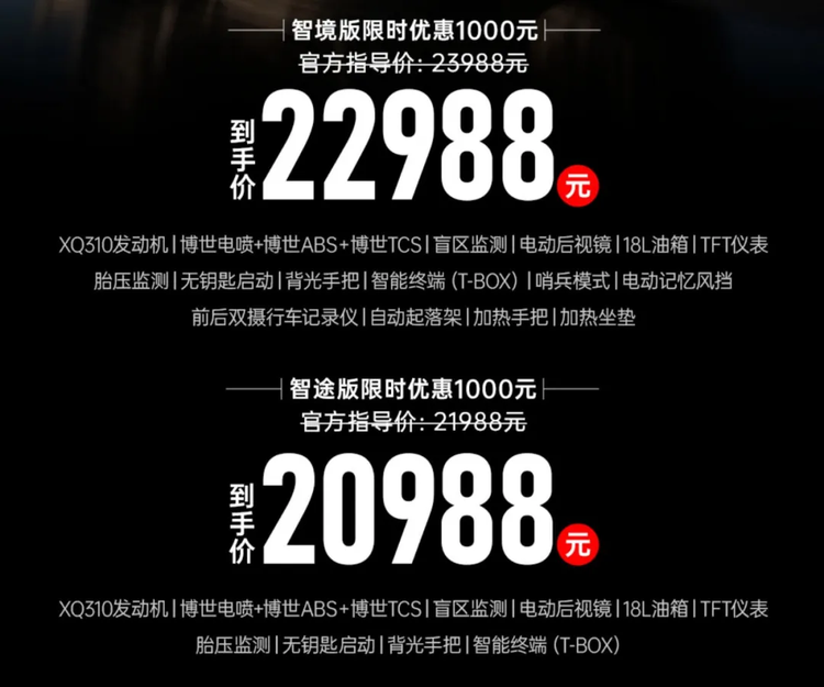 对于追求性价比与实用性的用户而言,智途版 20988 元的价格已能覆盖核心需求;对于注重舒适与智能的进阶用户,智境版 22988 元的定价则能带来越级体验。在 2 万价位段,赛科龙 RT5 凭借均衡的产品力,成为国产大踏板中不可忽视的选择,也为同级别车型树立了新的竞争标准。