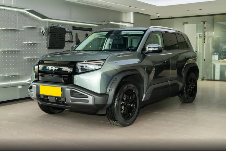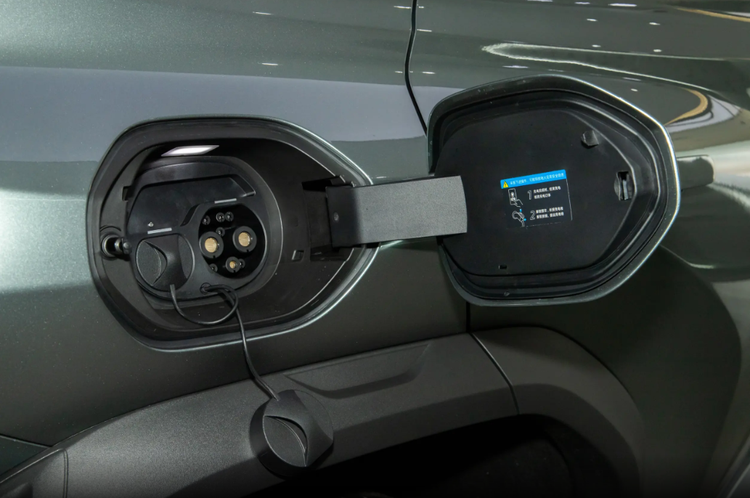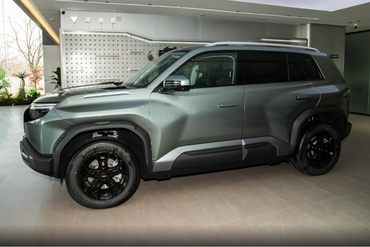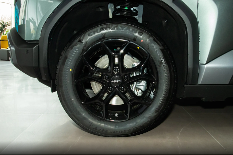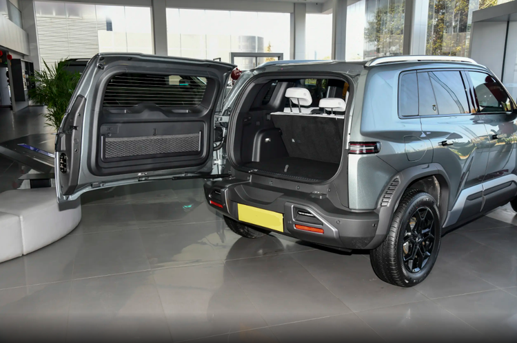 车身侧面是方中带圆的感觉,车顶平直,D柱很粗壮,前后翼子板都有很夸张的肌肉线条,力量感特别强。外扩的黑色轮眉还有仿导风槽设计,跟侧裙、前包围呼应得很到位。熏黑五辐轮毂很运动,再加上全隐藏式门把手,新能源的精致感也有了。此外,车辆的尾部设计是不规则的两段式后扰流板很亮眼,中间还有高位刹车灯。尾门那边还有方形小书包储物格,既能装东西,又特别硬派。尾灯是横向双层平行灯带,后包围和前脸前后呼应,整套设计又时尚又硬朗,看完真的很加分。