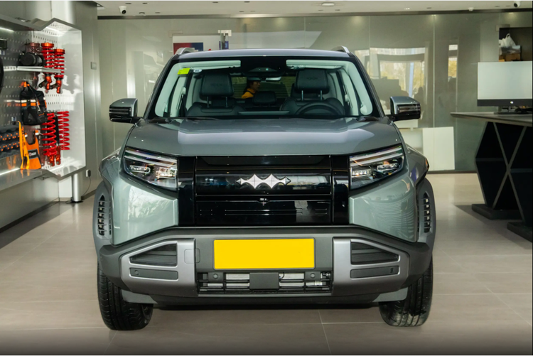 外观这块我也仔细看了,钛3闪充版还是延续了之前的机甲科技风,气场特别足。前脸是封闭式黑色中网,中间就是方程豹的 LOGO,两边是近似四边形的大灯,里面是双层灯眉加两点式LED灯,科技感一下就上来了。前包围用了凸出车身的黑色硬塑,再配上枪灰色饰件,硬派那味儿直接拉满。