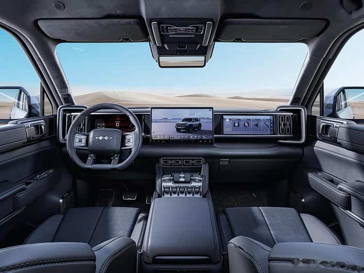 配置方面,全系标配540度全景影像(带透明底盘),抬头显示系统(HUD)、主动降噪、电动脚踏板、电动尾门位置记忆、前排座椅加热/通风/按摩/记忆(主驾驶)、低速四驱、坦克掉头、蠕行模式、车道偏离预警、前后方碰撞预警、倒车车侧预警、自动泊车入位和循迹倒车等功能。高配的智享版车型在车顶给配了激光雷达,辅助驾驶系统也升级到了第三代Coffee Pilot Ultra,支持高速领航辅助和城市路段导航辅助驾驶等功能。