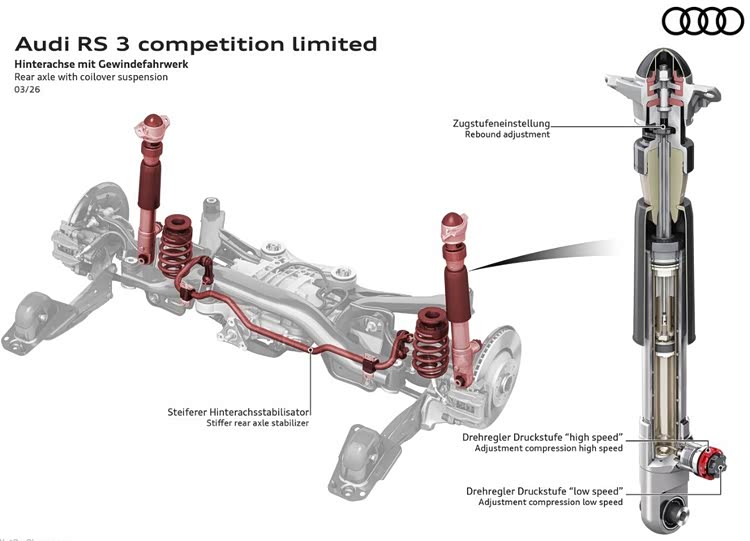 在性能车的世界里,悬挂改装常常被简单理解为两个字,那就是“更硬”。简单来说,改装后车身更低、侧倾更小,那么奥迪RS3 competition limited上的3-Way可调悬挂又是什么技术?