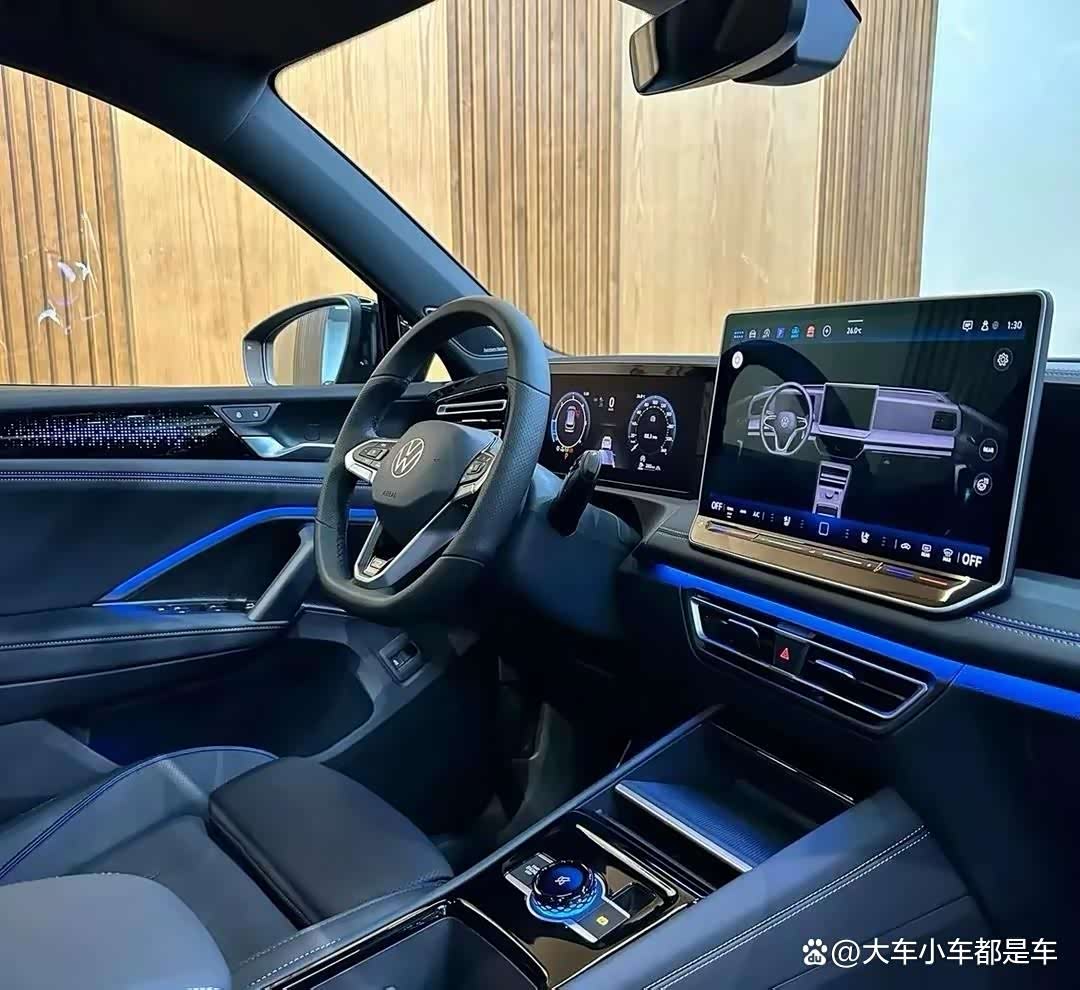 车内部分,中控台以驾驶员为导向,布局合理。12英寸悬浮式中控屏与10.3英寸全液晶仪表组合,显示清晰,操作便捷,高配版还增加11.6英寸副驾娱乐屏,瞬间提升车内科技氛围。大面积软性材质覆盖,座椅采用Alcantara拼接或蓝色缝线皮质,触感舒适。R-Line版本方向盘握感扎实,驾驶体验拉满。配置上,标配语音控制系统、手机无线充电、CarPlay/CarLife/HiCar互联,高阶车型还有IQ.360全景影像、HUD抬头显示、L2级驾驶辅助 ,日常驾驶轻松又安全。主副驾12向电动调节座椅,带加热、通风、按摩功能,不管是短途通勤还是长途旅行,都能让你坐享舒适。