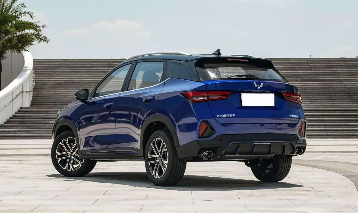 外观方面,星驰保留了五菱银标车系的家族化设计,同时也多处进行熏黑处理,比如,车头配备的镀铬飞翼式格栅,银黑双色的中网组成渐变式设计。车顶、承重柱、后视镜进行熏黑处理,前后还配备了双五辐轮毂,并内置了红色卡钳。车尾结合碳纤维面板,设计出比较夸张的黑色扩散器,两端还搭载了大口径圆形排气口,加深了整车的运动气息,并提高了“小钢炮”属性。