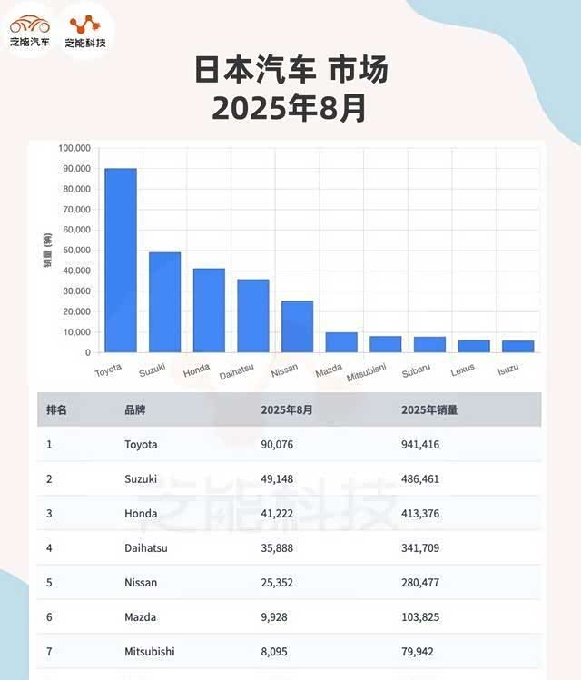 先说数据,2025年8月,日本国内新车销量同比下滑了约8.3%,这是连续第三个月出现负增长。天塌了?倒不至于,但确实让不少车企“气的蹦起来”,尤其是那些依赖本土市场的品牌。不过有意思的是,虽然大盘绿了,但品牌之间的表现却大不一样,有人愁眉苦脸,有人却在偷偷笑。