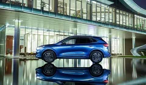 在外观设计上,福特锐际以“静水流深”为理念,呈现出夺目优雅的谧蓝水滴造型。其3D LED大灯采用分层递进式模组,展现出珠宝切面般的璀璨效果。侧面采用低倾A柱与溜背式车身设计,实现了更好的空气动力学性能,降低风阻系数,进一步降低油耗和风噪。