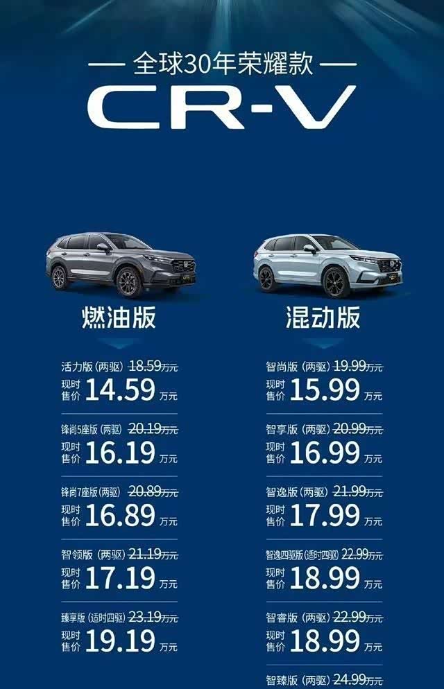 最近朋友问我:“想买辆靠谱的SUV,预算十五六万,有没有推荐?”我脱口而出就是—— 本田CR-V(参数|询价)。这车简直就是“国民神车”级别的存在,全球卖了30年,累计销量破千辆,靠的就是俩字:省心。最近它又搞了个大动作,荣耀款上市,优惠后14.59万元起,这价格一出,不少竞品估计都坐不住了。你说它是不是“老咕噜棒子”?可人家偏偏不走怀旧风,内饰直接焕新,配置也支棱起来,真有点“打脸”那些说它过气的人。今天咱就来聊聊,这台“上桌第一个动筷”的城市SUV,到底还有没有当年那股劲儿?