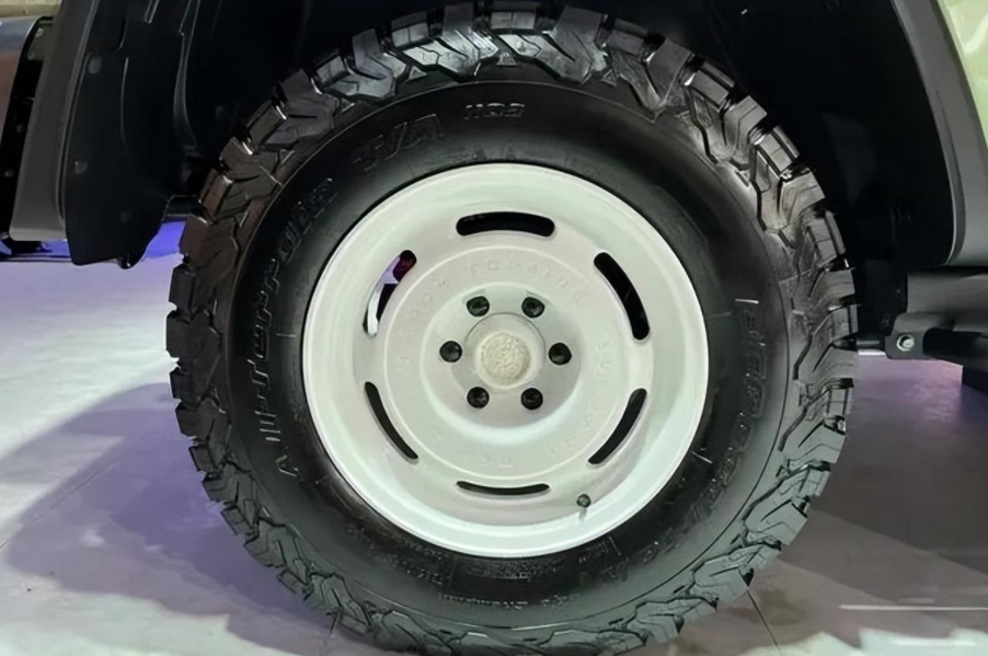 车身侧面造型方正,线条圆润,不过方方正正的车窗、黑色车顶行李架、前后突出的黑色轮眉还是呈现出了极强的力量感。同时新车还运用了造型复古的轮毂,内部开孔由原来的9孔变成了6孔。此外新车的减振器也有所升级,悬架提供了2英寸,使得轮胎与轮眉之间的间隙更大,通透性得到了大幅度提升。