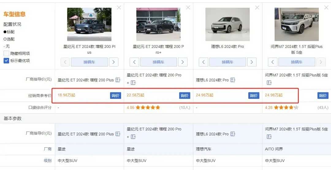 此外,星纪元ET在价格上也极具竞争力。其起售价仅为18.98万元,远低于理想L6和问界M7的24.98万元。即使是顶配版本,价格也仅为22.58万元,性价比极高。在配置上,星纪元ET配备了空气悬挂和前双叉臂后多连杆的底盘,提供了优于理想L6和问界M7的操控和舒适性。