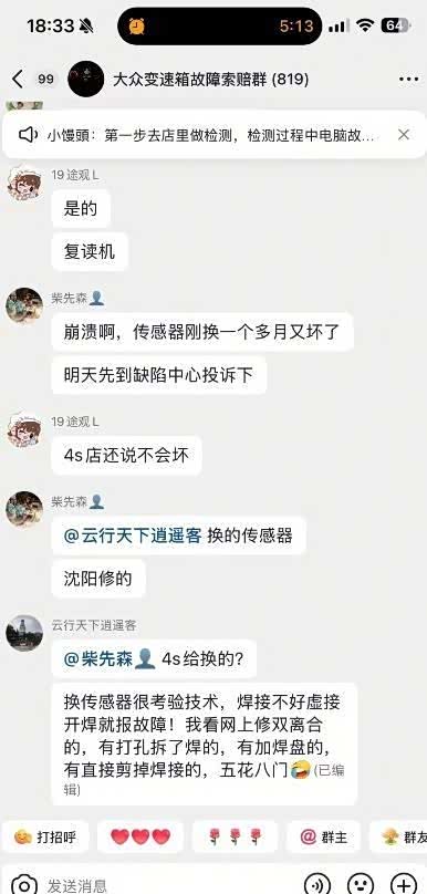 有819人的维权群里,每天都有新消息弹出。群文件里存着37份不同地区的维修单照片,故障描述都写着“高速失挡”。管理员统计过,这些车基本都是2016到2018年生产的迈腾或帕萨特。