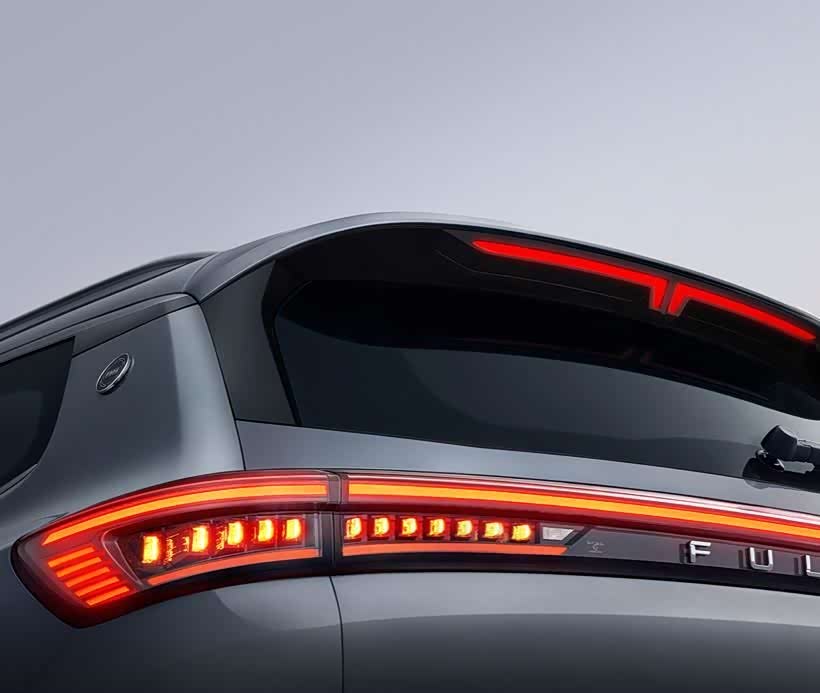从车型侧面以及尾部来看,这款风云T8采用了19英寸的轮毂,并且还采用了隐藏式的电动门把手设计。此外,在C柱部分还搭载了独特的终身质保的徽标,让人觉得很放心。而尾部则是贯穿式的尾灯,从尾部我们可以清晰发现,这款风云T8的悬架是铸铁材质的。车身数据部分,该新车的长宽高分别为4730/1860/1747mm,轴距是2710mm。作为一辆中型SUV,2.71米的轴距显然水准不是很够。