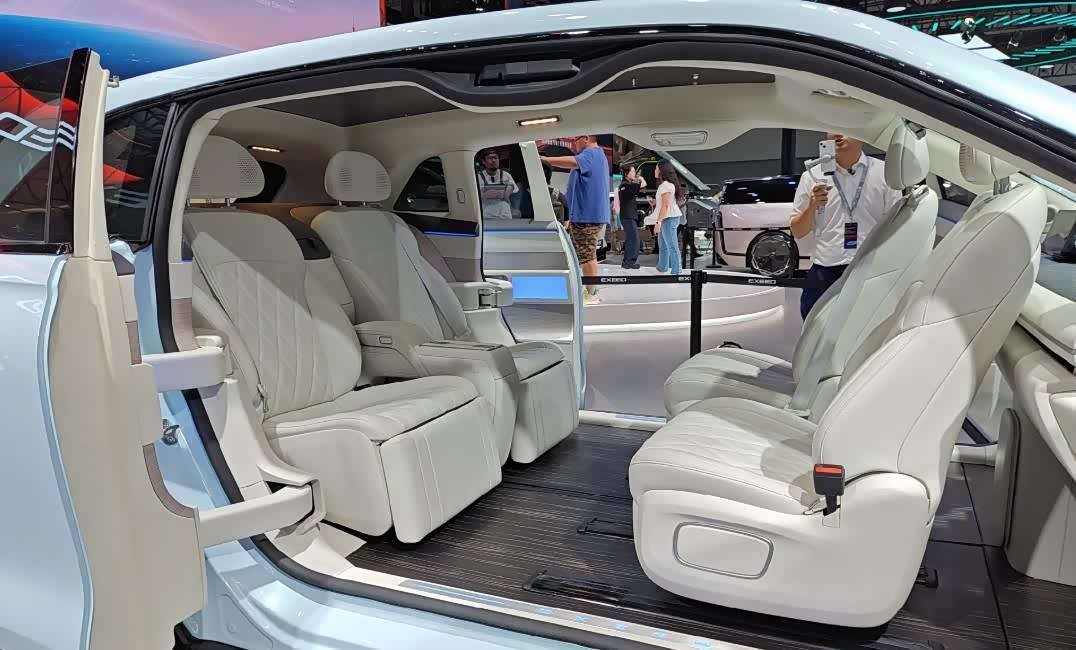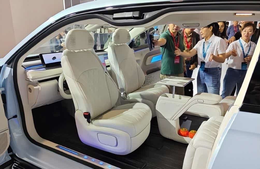 值得一提的是,这款魔方空间的4座配置,前面两个座椅是可以进行270度旋转的,能够与后排形成面对面的会议模式。此外,厂家还贴心设置了桌板冰箱。说实话,第一次看到这样的设计还是在极氪MPV车型上。