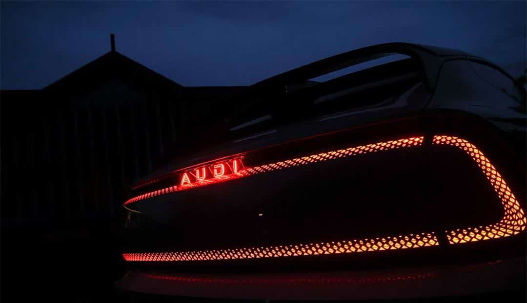 无框车门静默打开,灯光未亮时如星芒隐现,点亮刹那,942颗灯珠组成环形光幕,仿佛整辆车被光轻轻托起。这束光,既是对奥迪百年灯光艺术的致敬,更是电动时代独有的科技诗篇。这是一种不容置疑的身份表达,在原创匮乏的时代,奥迪依然选择用设计说话。